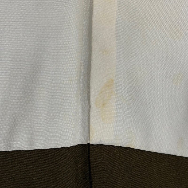 帯次第で幅広くお使いいただける素敵な訪問着です。 帯により格式を変える事の出来る印象のお着物は、様々に場面で活躍してくれることでしょう。 身丈はこれ以上伸ばすことができません。 裄丈はこれ以上伸ばすことができません。 上前所々と後身頃の腰付近にヤケ、後身頃臀部付近にシミ、衿周りや両袖口中に汚れがございます。 胴裏臀部にシミがございます。 ご購入の際はその点ご留意ください。 ※なお、厳しく商品の状態確認を行っておりますが、記載の汚れ以外にも見落とし箇所がある可能性がある旨ご了承いただけますと幸いです。 沢山の商品の中からご覧いただき誠にありがとうございます。