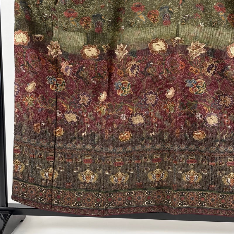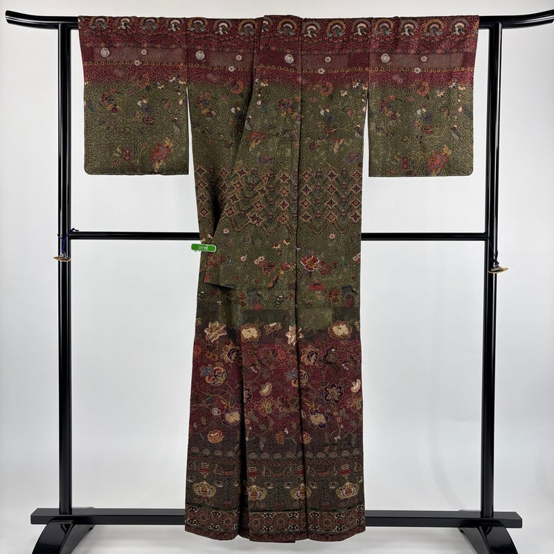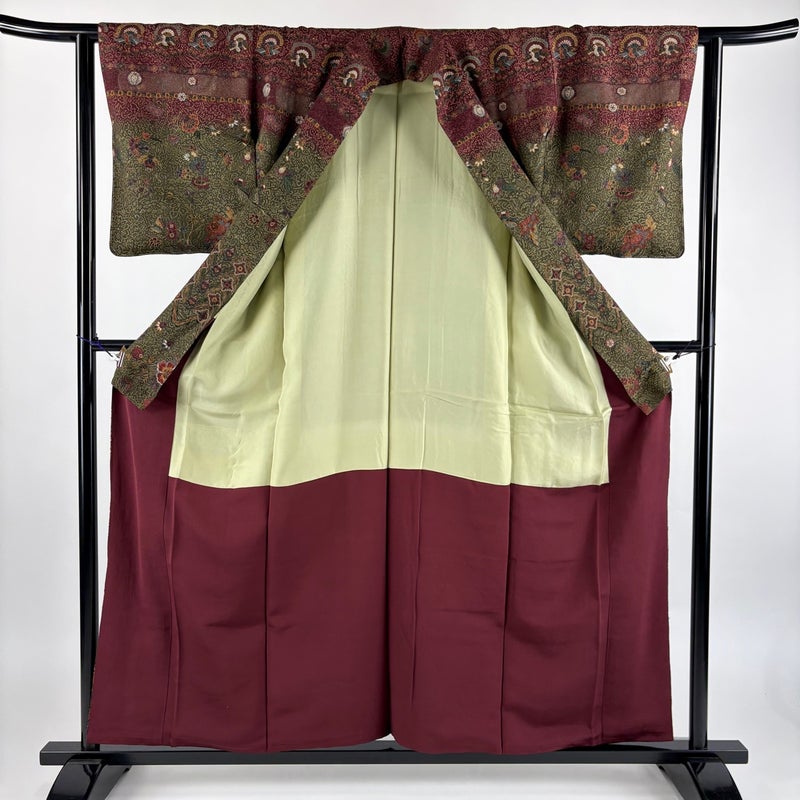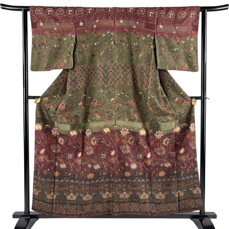 【着物ランク】逸品 【素材】正絹 【身丈】約157.5cm 【裄丈】約61.5cm 【袖丈】約49cm 【袖幅】約32.5cm 【前幅】約23cm 【後幅】約28cm 【サイズ】S 【着物仕立て】袷 【着用時期】10~5月 【状態ランク】ランクA 【着物着用シーン】披露宴、パーティー、お見合い、式典、茶会