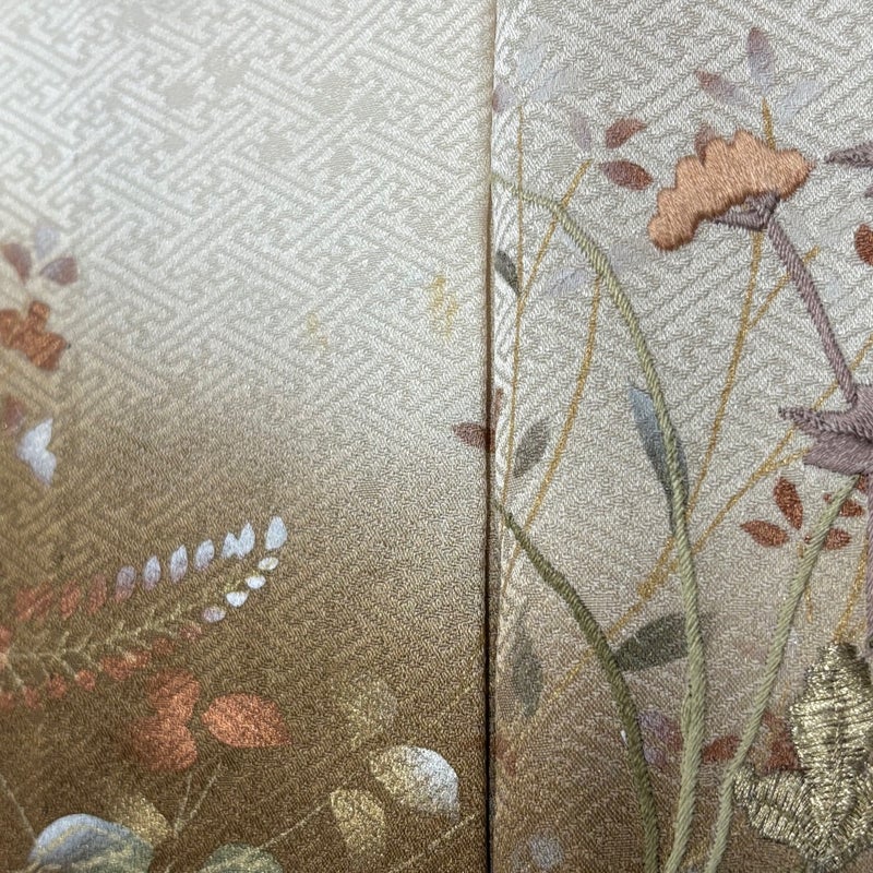 【着物ランク】秀品 【素材】正絹 【身丈】約155cm 【裄丈】約63cm 【袖丈】約44cm 【袖幅】約31.5cm 【前幅】約24.5cm 【後幅】約30.5cm 【サイズ】S 【着物仕立て】単衣 【着用時期】6/9月 【状態ランク】ランクB 【着物着用シーン】披露宴、パーティー、お見合い、式典、茶会