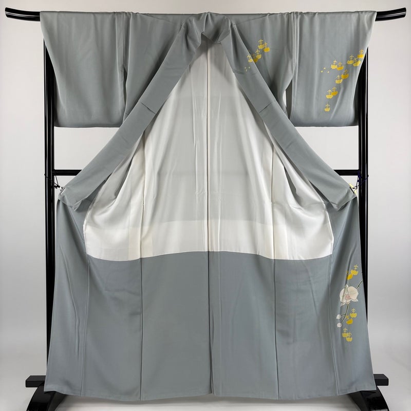 【訪問着】 灰色系 灰緑 秀品 B 約160cm~約169cm 裄丈69cm以上 (L)size 袖丈48cm 7990-9980 二万以下