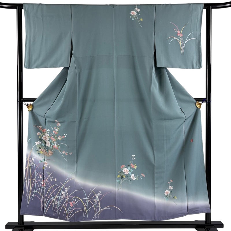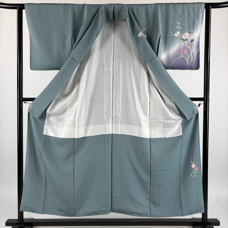 【訪問着】 灰色系 青灰色 秀品 A 約150cm~約159cm 裄丈62cm以下 (S)size 袖丈48cm 9990-29990 美品 二万以下