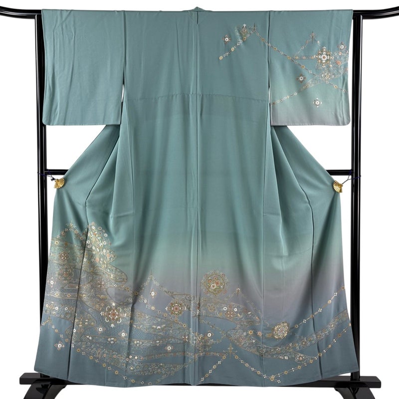 【訪問着】 緑系 薄緑 秀品 B 約150cm~約159cm 裄丈63cm-64cm (M)size 袖丈48cm 7990-9980 二万以下