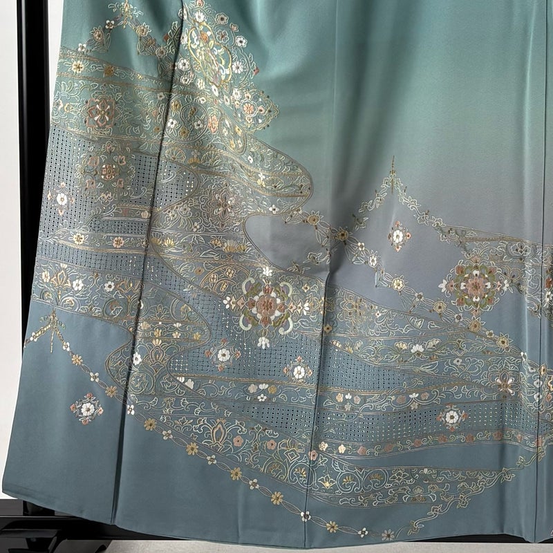 【着物ランク】秀品 【素材】正絹 【身丈】約158cm 【裄丈】約64cm 【袖丈】約48cm 【袖幅】約33.5cm 【前幅】約24.5cm 【後幅】約30.5cm 【サイズ】M 【着物仕立て】袷 【着用時期】10~5月 【状態ランク】ランクB 【着物着用シーン】披露宴、パーティー、お見合い、式典、茶会