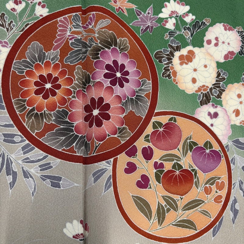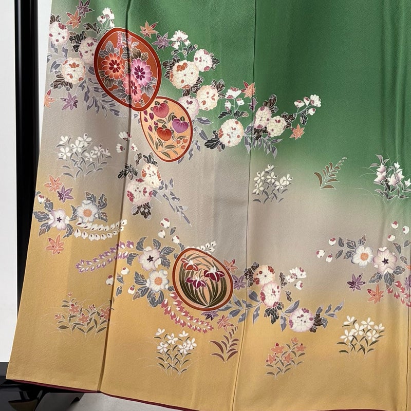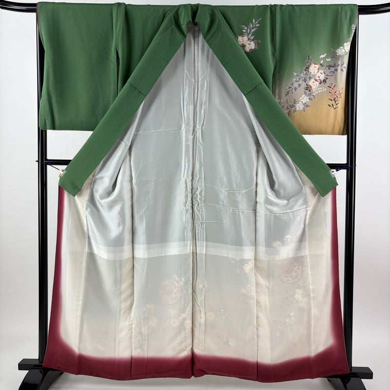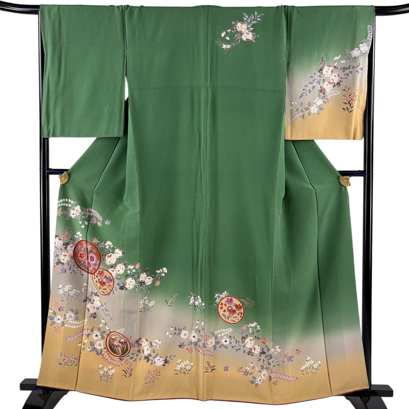 【訪問着】 緑系 緑 秀品 C 約160cm~約169cm 裄丈67cm-68cm (M)size 袖丈50cm-60cm 7990-9980 二万以下