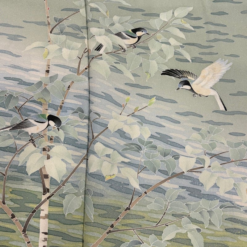【訪問着】 緑系 薄緑 秀品 C 約160cm~約169cm 裄丈66cm (M)size 袖丈49cm 7990-9980 二万以下