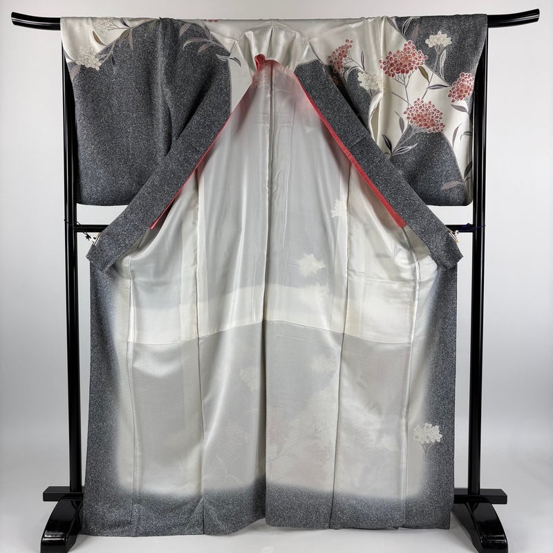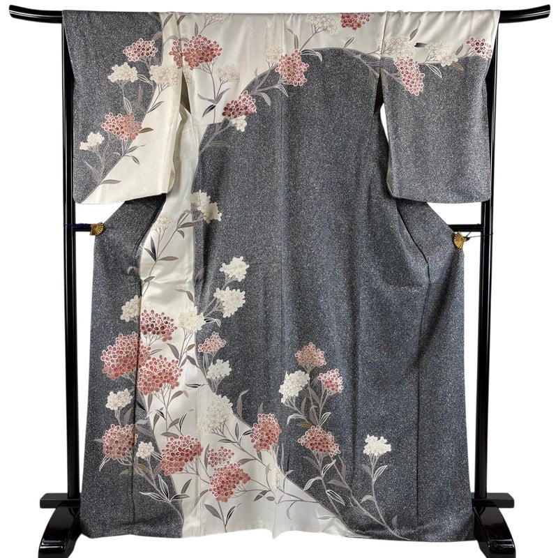 【訪問着】 灰色系 黒灰 秀品 B 約160cm~約169cm 裄丈67cm-68cm (L)size 袖丈61cm~90cm 7990-9980 二万以下