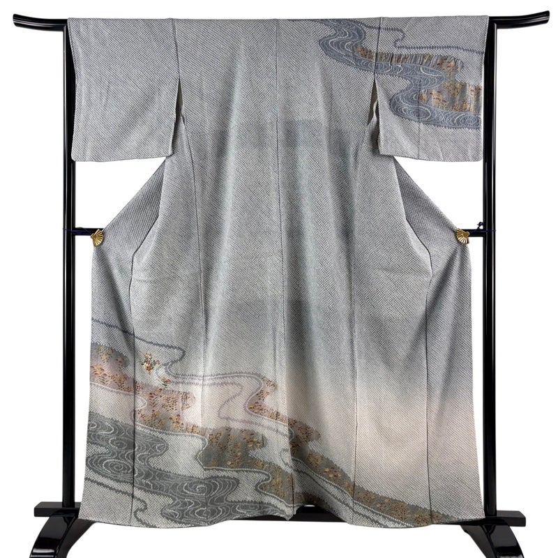 【訪問着】 灰色系 青灰色 秀品 B 約160cm~約169cm 裄丈65cm (M)size 袖丈46cm以下 7990-9980 二万以下