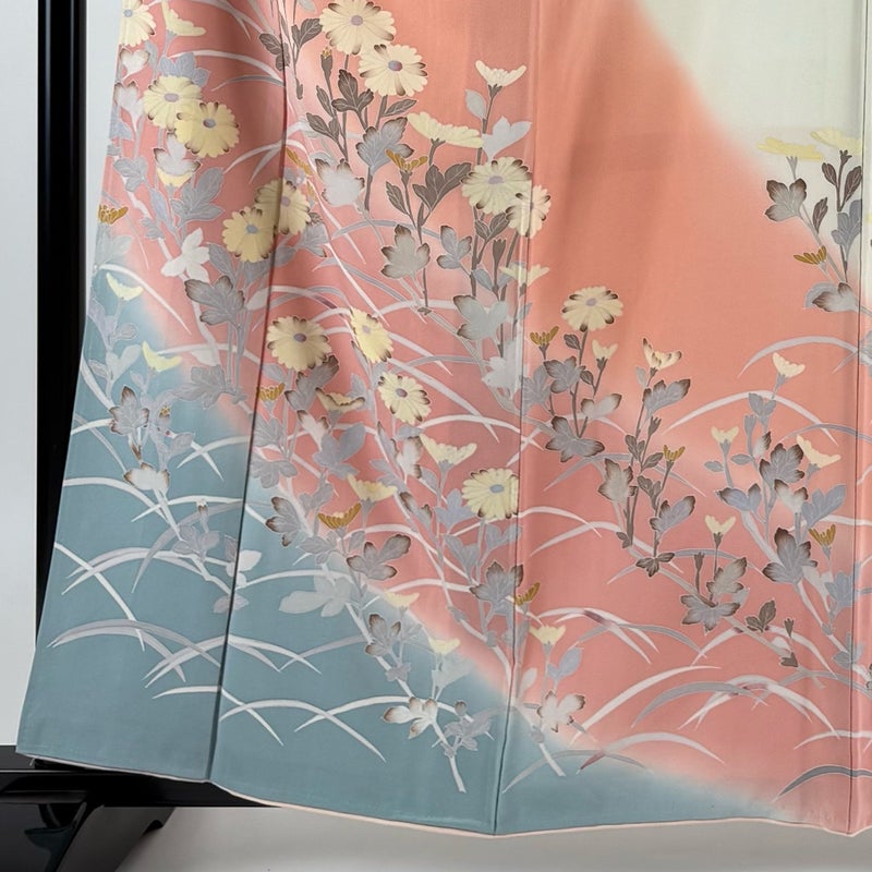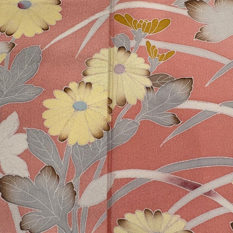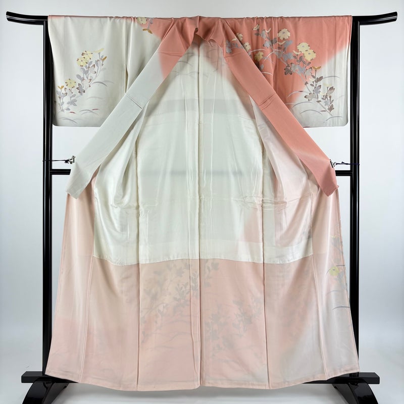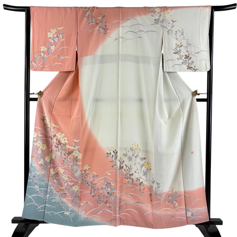 【訪問着】 赤系 サーモンピンク 秀品 B 約160cm~約169cm 裄丈65cm (M)size 袖丈47cm 7990-9980 二万以下