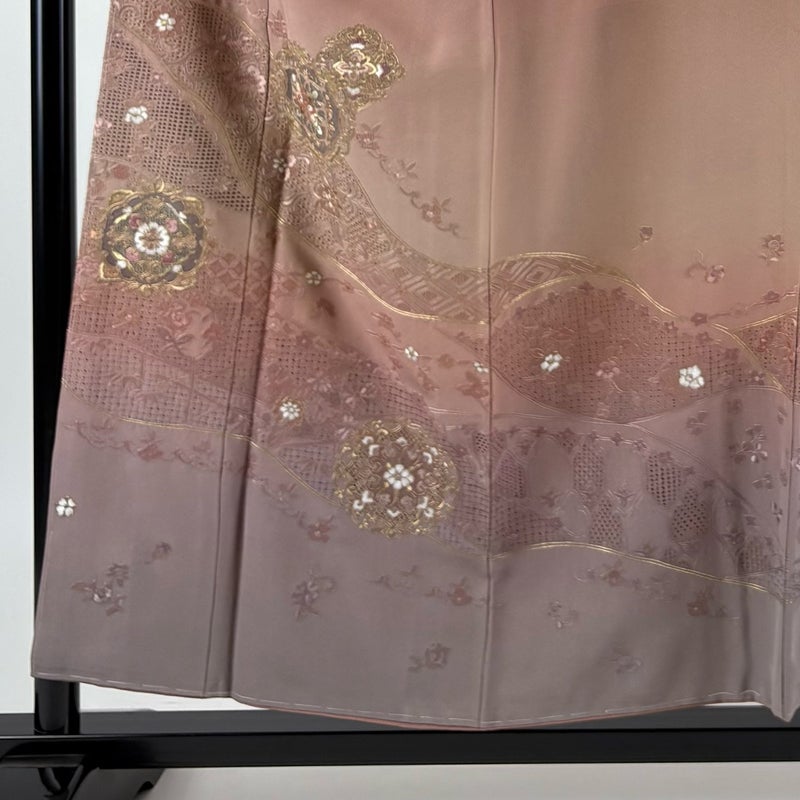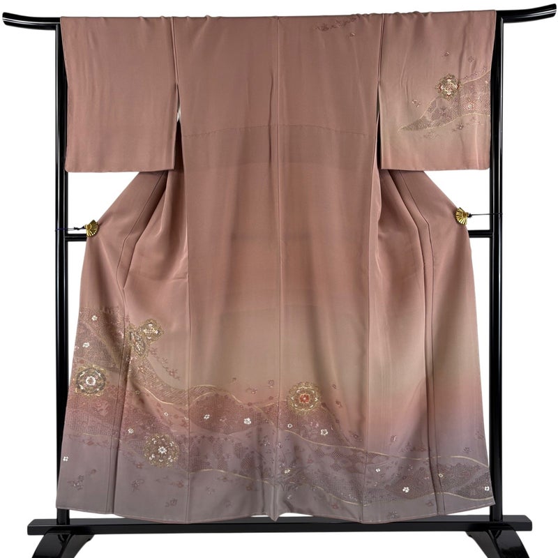 【着物ランク】秀品 【素材】正絹 【身丈】約155.5cm 【裄丈】約66cm 【袖丈】約48.5cm 【袖幅】約34cm 【前幅】約25cm 【後幅】約30.5cm 【サイズ】M 【着物仕立て】袷 【着用時期】10~5月 【状態ランク】ランクA 【着物着用シーン】披露宴、パーティー、お見合い、式典、茶会