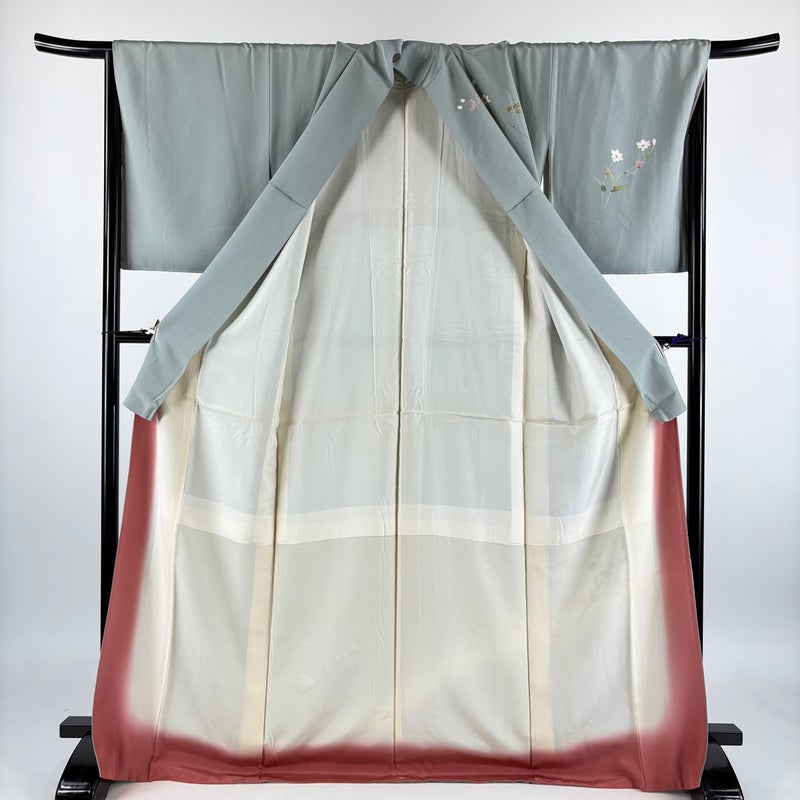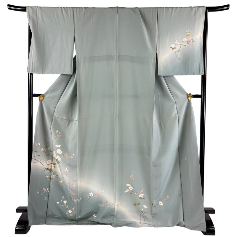 【訪問着】 灰色系 灰緑 秀品 B 約170cm~約179cm 裄丈67cm-68cm (L)size 袖丈50cm-60cm 7990-9980 二万以下