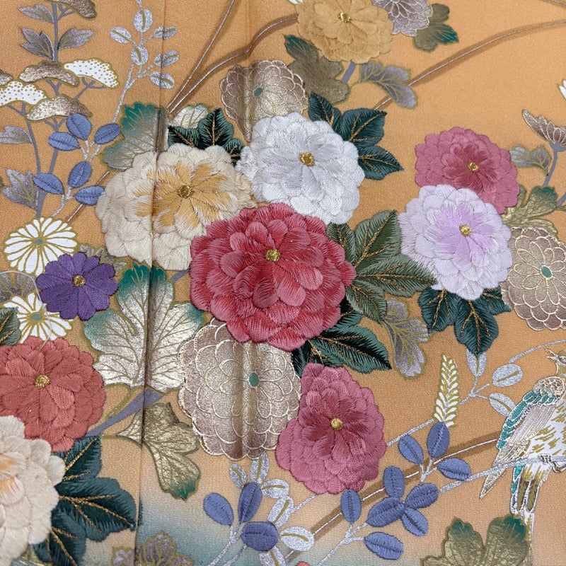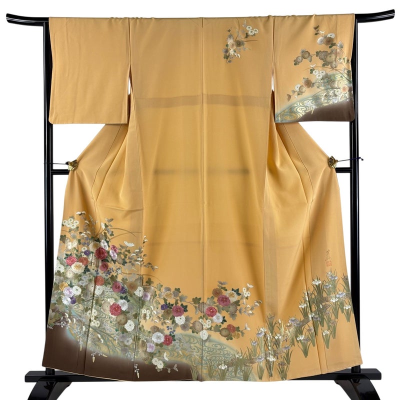 【着物ランク】秀品 【素材】正絹 【身丈】約159cm 【裄丈】約66cm 【袖丈】約47.5cm 【袖幅】約34cm 【前幅】約25cm 【後幅】約30cm 【サイズ】M 【着物仕立て】袷 【着用時期】10~5月 【状態ランク】ランクB 【着物着用シーン】披露宴、パーティー、お見合い、式典、茶会