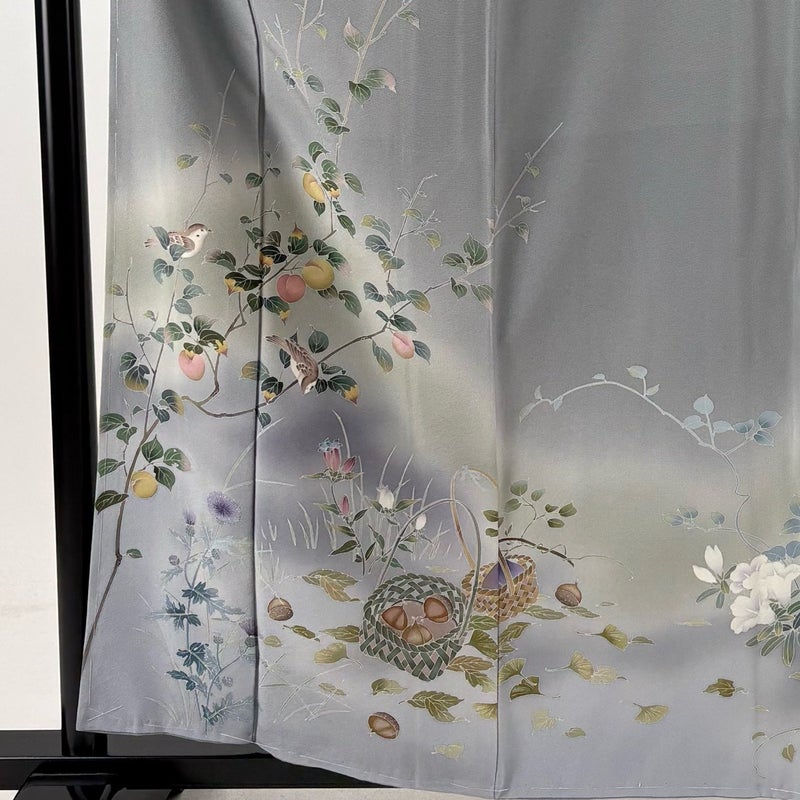 【訪問着】 灰色系 灰色 秀品 B 約150cm~約159cm 裄丈66cm (M)size 袖丈48cm 7990-9980 二万以下