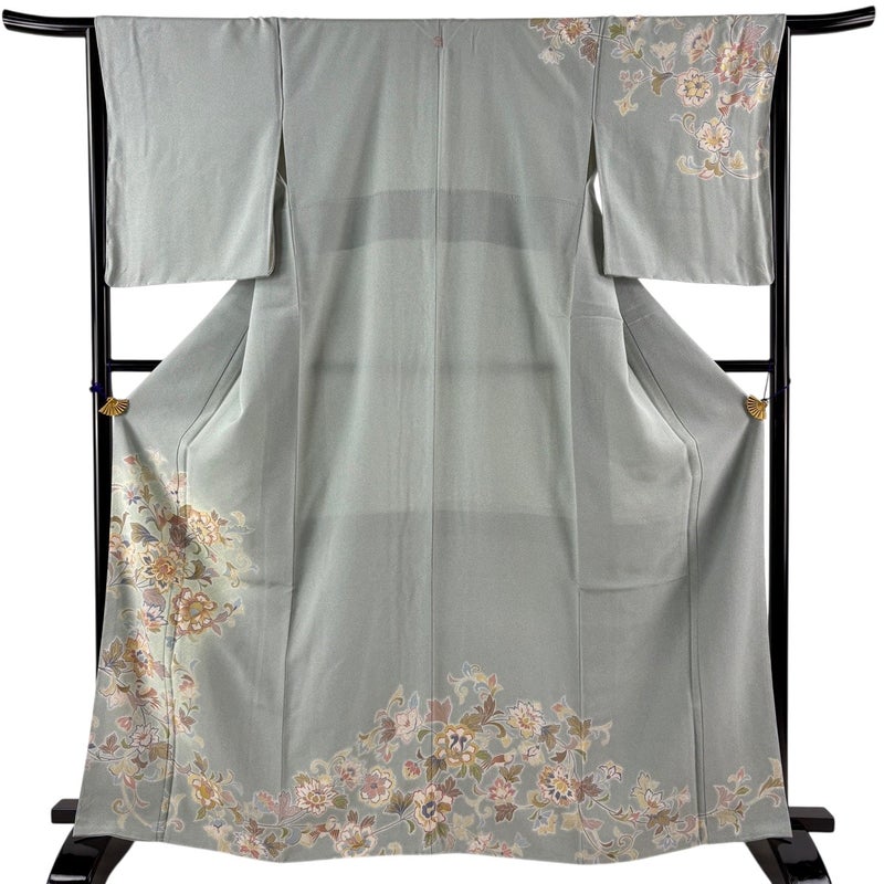 【訪問着】 灰色系 青灰色 秀品 B 約160cm~約169cm 裄丈66cm (M)size 袖丈50cm-60cm 7990-9980 二万以下