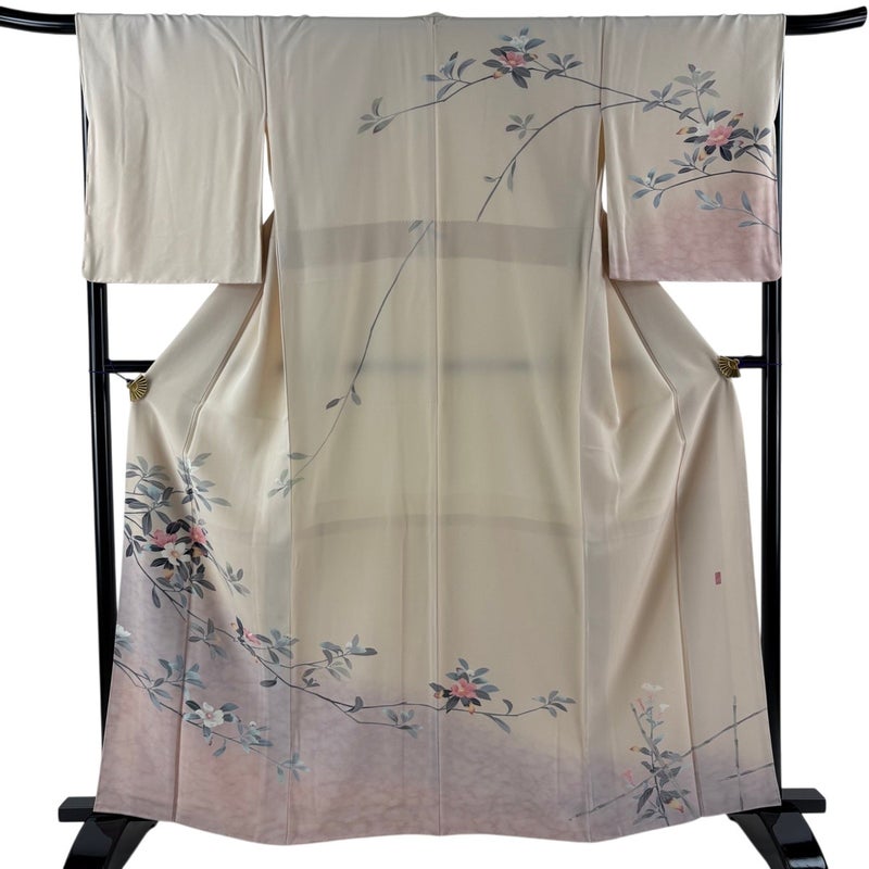 【着物ランク】秀品 【素材】正絹 【身丈】約162cm 【裄丈】約68cm 【袖丈】約53cm 【袖幅】約34.5cm 【前幅】約23cm 【後幅】約30.5cm 【サイズ】L 【着物仕立て】袷 【着用時期】10~5月 【状態ランク】ランクB 【着物着用シーン】披露宴、パーティー、お見合い、式典、茶会