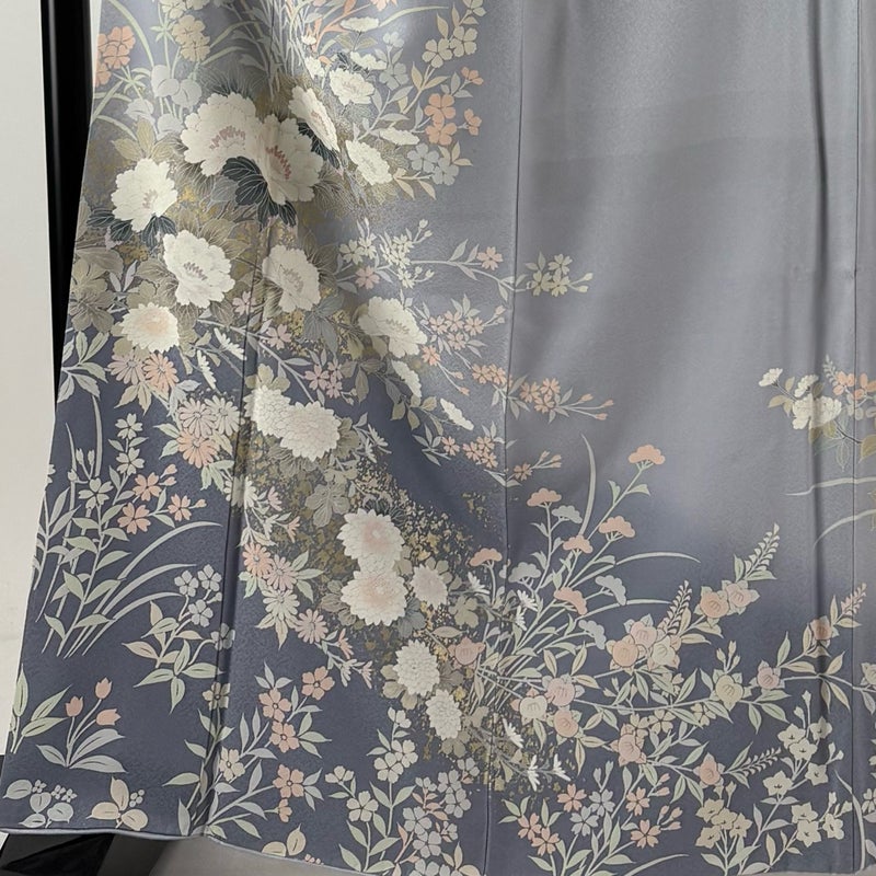 【着物ランク】秀品 【素材】正絹 【身丈】約163.5cm 【裄丈】約68.5cm 【袖丈】約48cm 【袖幅】約34.5cm 【前幅】約25cm 【後幅】約30.5cm 【サイズ】L 【着物仕立て】袷 【着用時期】10~5月 【状態ランク】ランクB 【着物着用シーン】披露宴、パーティー、お見合い、式典、茶会