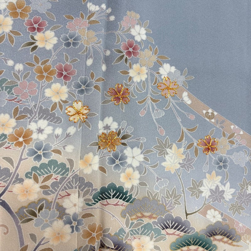 【訪問着】 青系 水色 秀品 B 約150cm~約159cm 裄丈63cm-64cm (M)size 袖丈48cm 7990-9980 二万以下