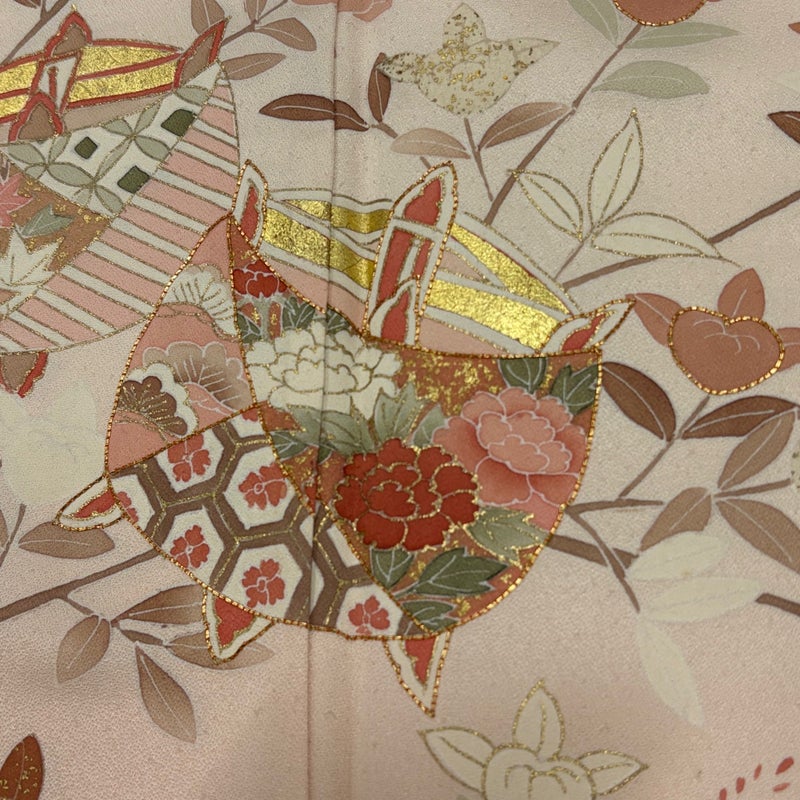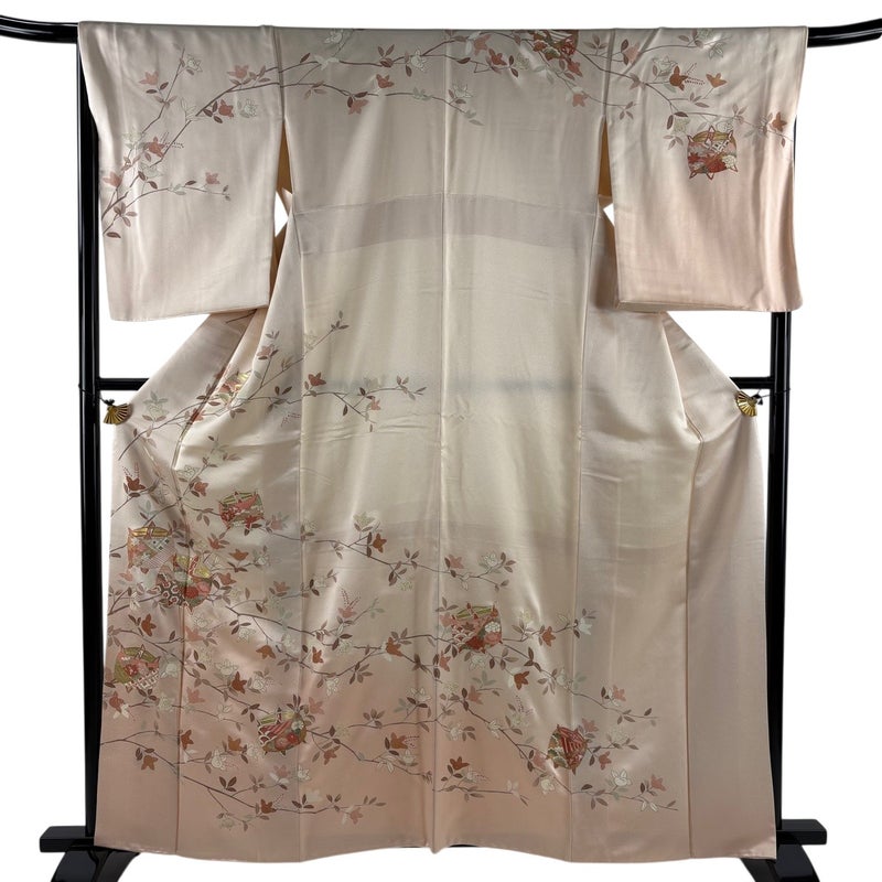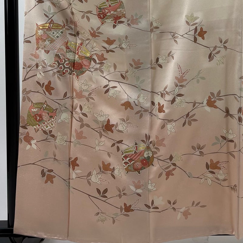 【訪問着】 赤系 薄ピンク 秀品 B 約160cm~約169cm 裄丈67cm-68cm (L)size 袖丈50cm-60cm 7990-9980 二万以下