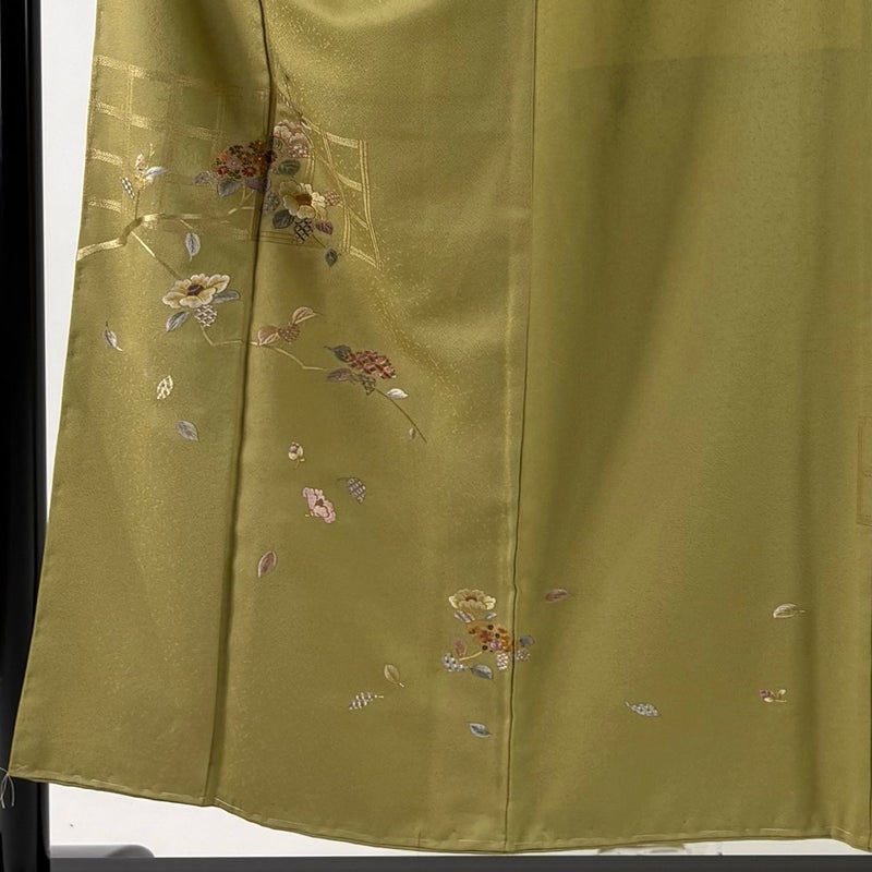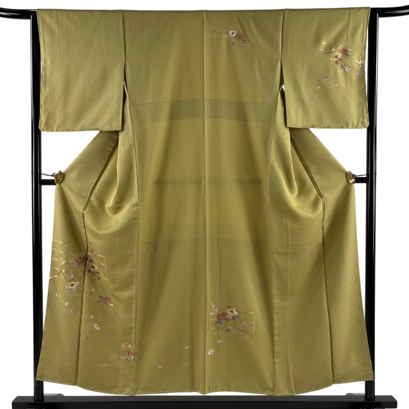 【訪問着】 緑系 抹茶色 秀品 A 約150cm~約159cm 裄丈63cm-64cm (M)size 袖丈49cm 9990-29990 美品 二万以下