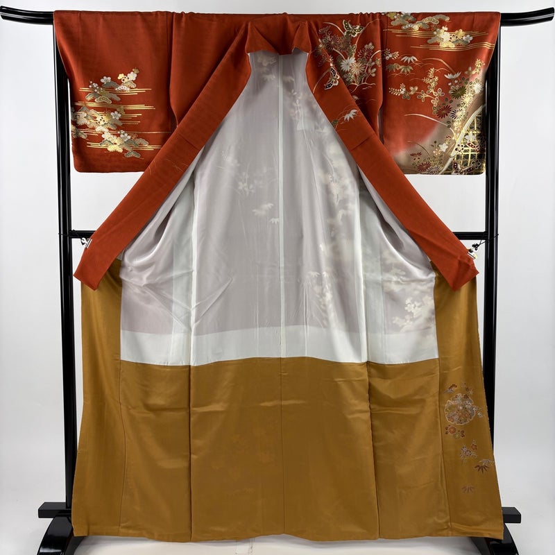 【訪問着】 赤系 赤茶 秀品 B 約160cm~約169cm 裄丈66cm (M)size 袖丈49cm 7990-9980 二万以下