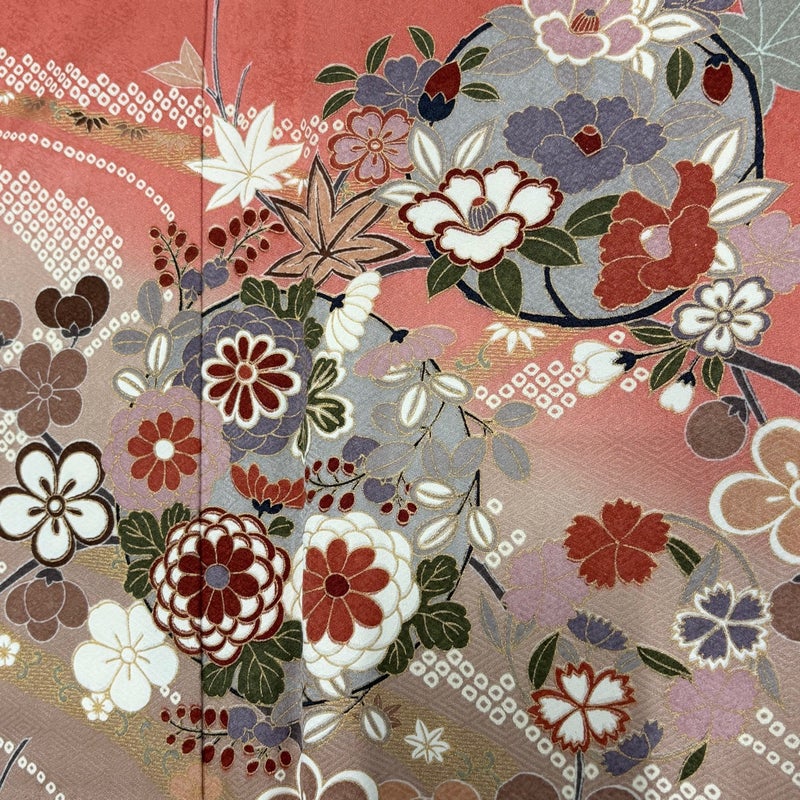 【訪問着】 赤系 茜色 秀品 B 約150cm~約159cm 裄丈63cm-64cm (S)size 袖丈48cm 7990-9980 二万以下