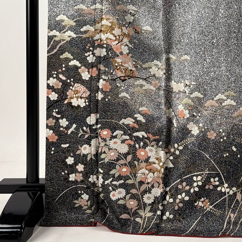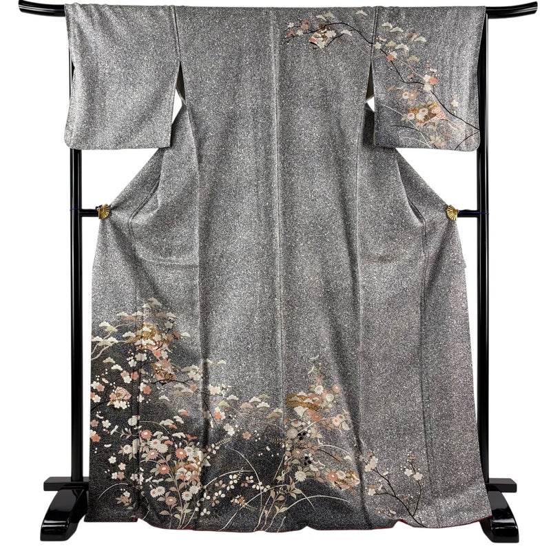 【着物ランク】秀品 【素材】正絹 【身丈】約171cm 【裄丈】約68cm 【袖丈】約49cm 【袖幅】約35.5cm 【前幅】約24cm 【後幅】約30cm 【サイズ】L 【着物仕立て】袷 【着用時期】10~5月 【状態ランク】ランクA 【着物着用シーン】披露宴、パーティー、お見合い、式典、茶会