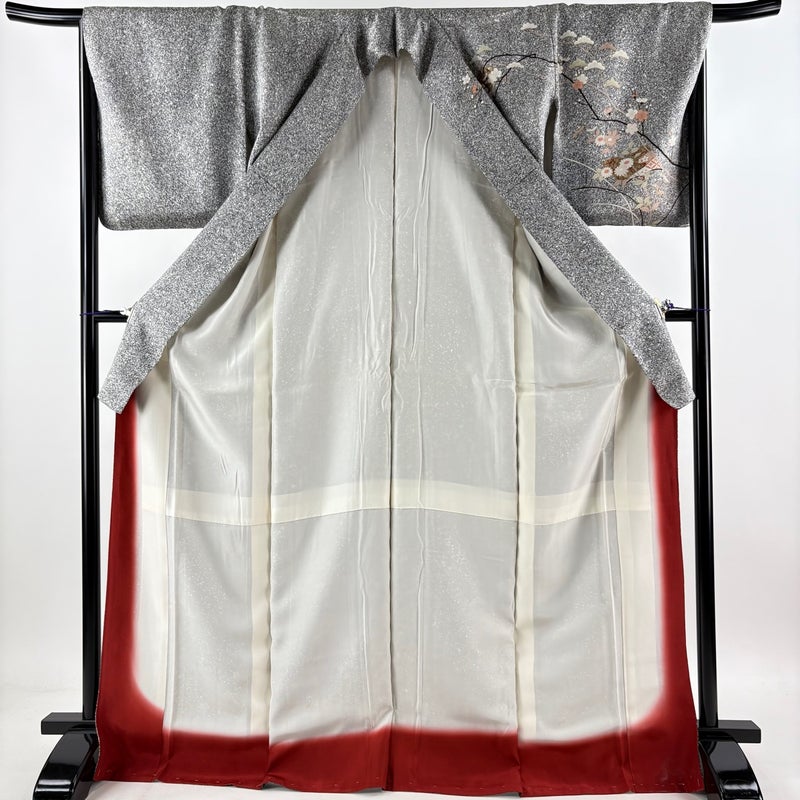 【訪問着】 灰色系 灰色 秀品 A 約170cm~約179cm 裄丈67cm-68cm (L)size 袖丈49cm 9990-29990 美品 二万以下