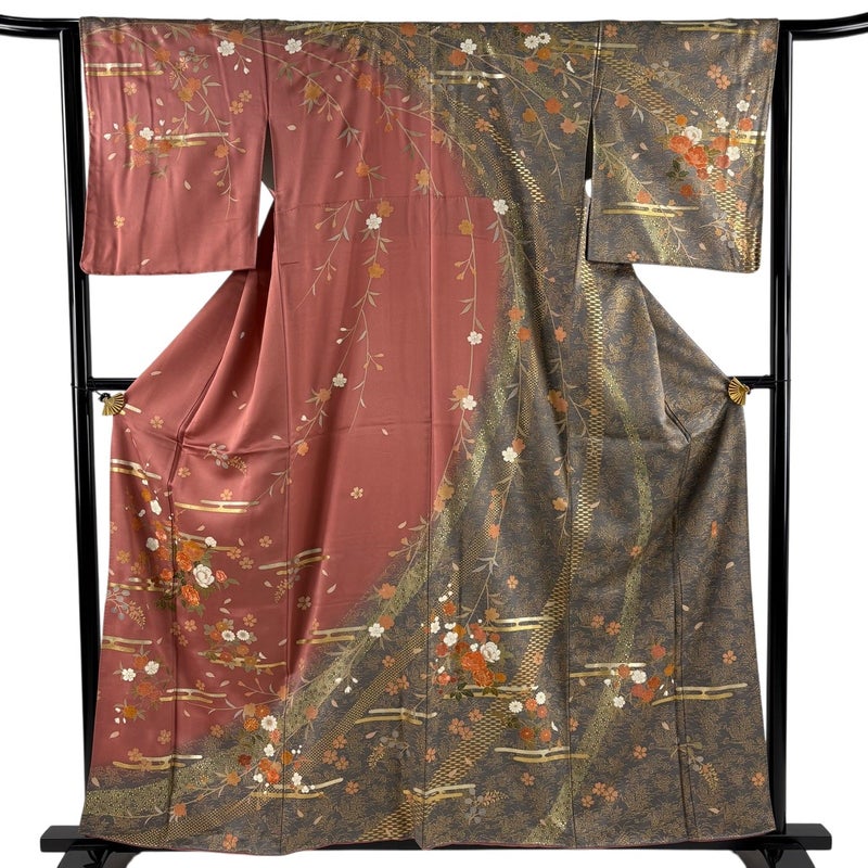 【訪問着】 赤系 ピンク 秀品 B 約150cm~約159cm 裄丈63cm-64cm (M)size 袖丈48cm 7990-9980 二万以下