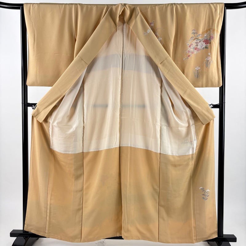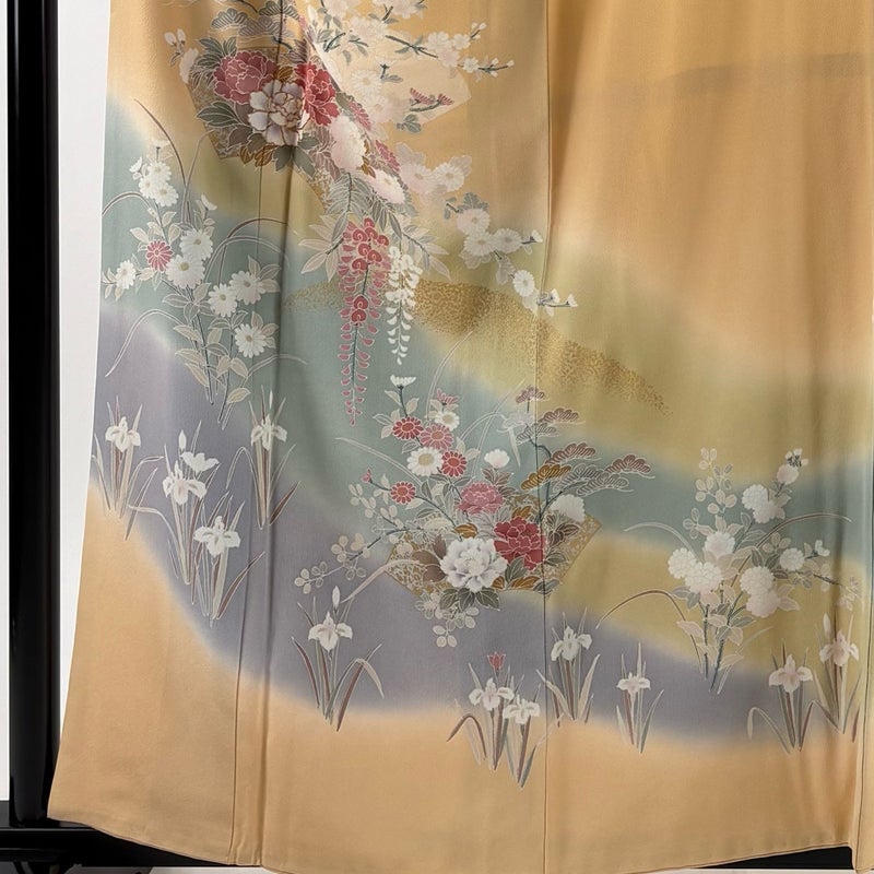 【着物ランク】秀品 【素材】正絹 【身丈】約160cm 【裄丈】約65cm 【袖丈】約55.5cm 【袖幅】約33cm 【前幅】約23cm 【後幅】約30cm 【サイズ】M 【着物仕立て】袷 【着用時期】10~5月 【状態ランク】ランクB 【着物着用シーン】披露宴、パーティー、お見合い、式典、茶会