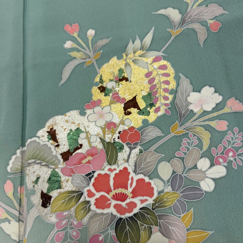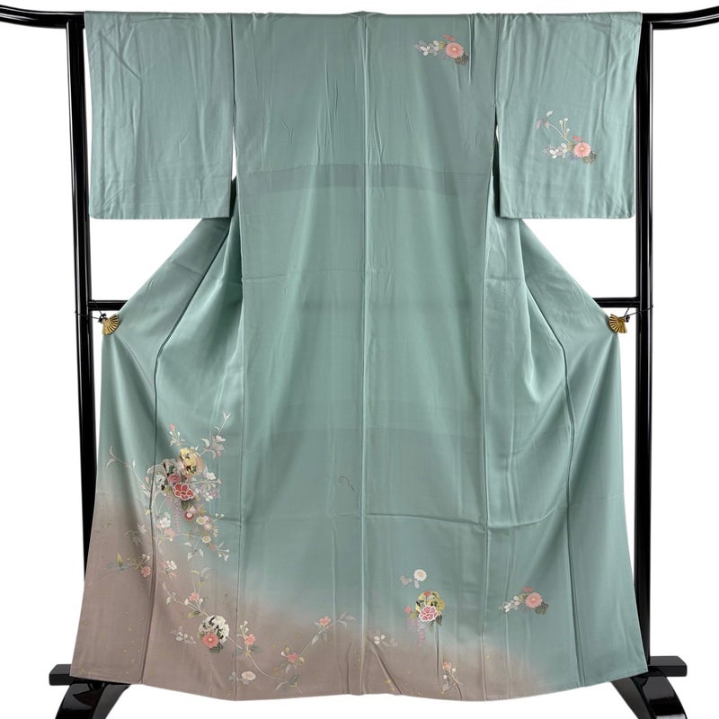 【訪問着】 緑系 薄緑 秀品 B 約160cm~約169cm 裄丈63cm-64cm (M)size 袖丈48cm 7990-9980 二万以下