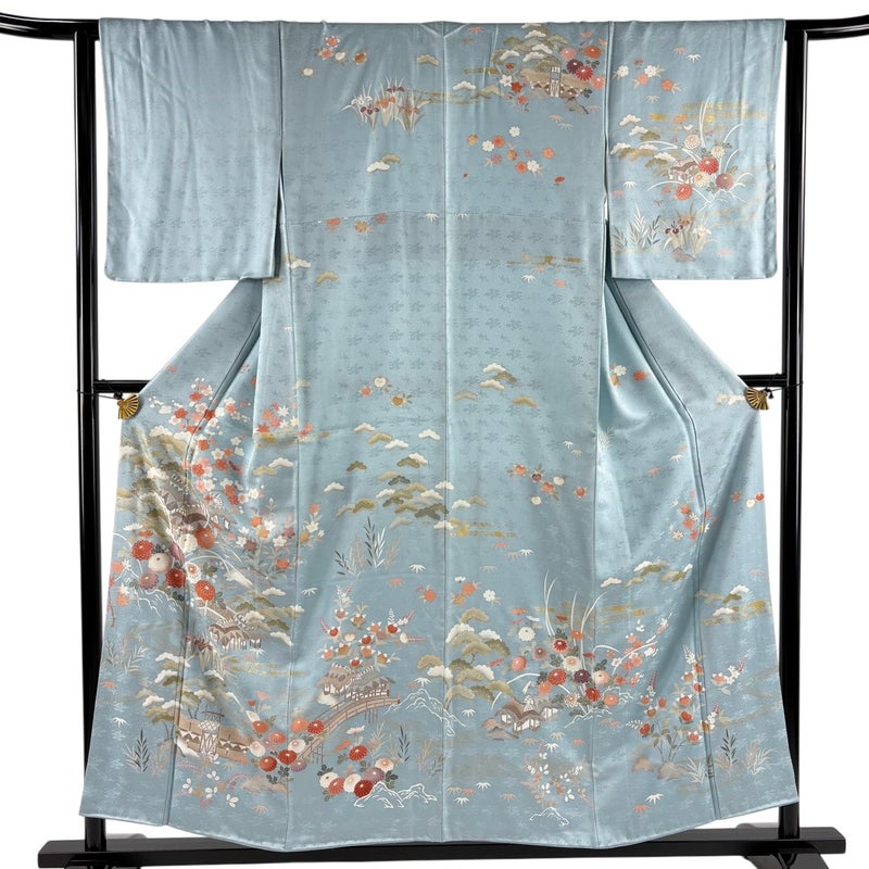 【訪問着】 青系 水色 秀品 A 約150cm~約159cm 裄丈63cm-64cm (M)size 袖丈49cm 9990-29990 美品 二万以下