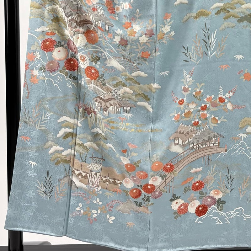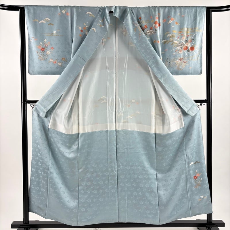 【着物ランク】秀品 【素材】正絹 【身丈】約155.5cm 【裄丈】約64cm 【袖丈】約49cm 【袖幅】約32.5cm 【前幅】約24cm 【後幅】約29.5cm 【サイズ】M 【着物仕立て】袷 【着用時期】10~5月 【状態ランク】ランクA 【着物着用シーン】披露宴、パーティー、お見合い、式典、茶会