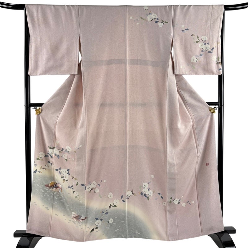 【着物ランク】秀品 【素材】正絹 【身丈】約162cm 【裄丈】約67cm 【袖丈】約48.5cm 【袖幅】約34cm 【前幅】約24cm 【後幅】約29cm 【サイズ】M 【着物仕立て】袷 【着用時期】10~5月 【状態ランク】ランクC 【着物着用シーン】披露宴、パーティー、お見合い、式典、茶会