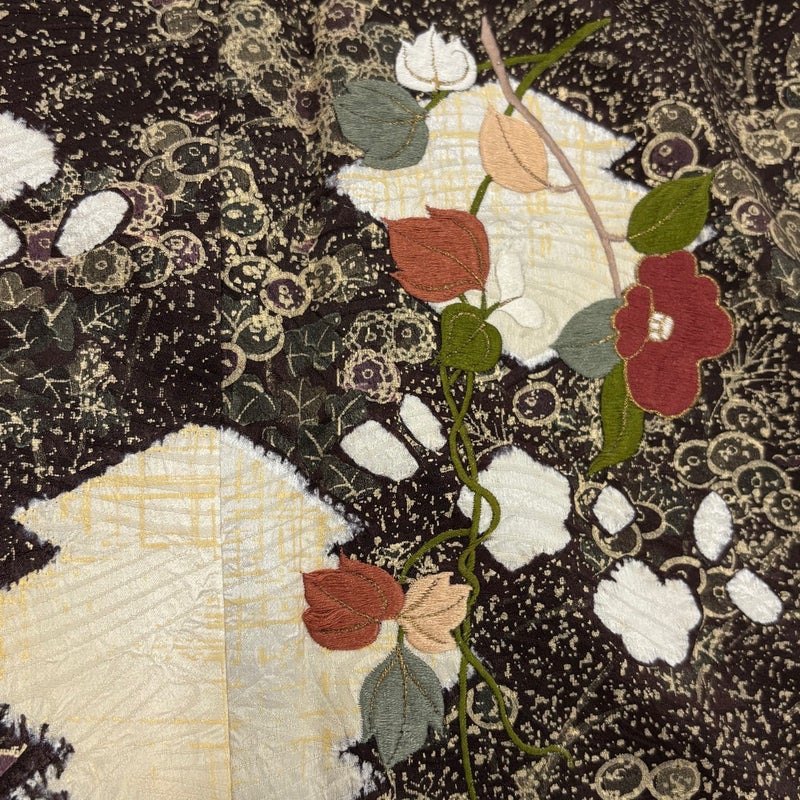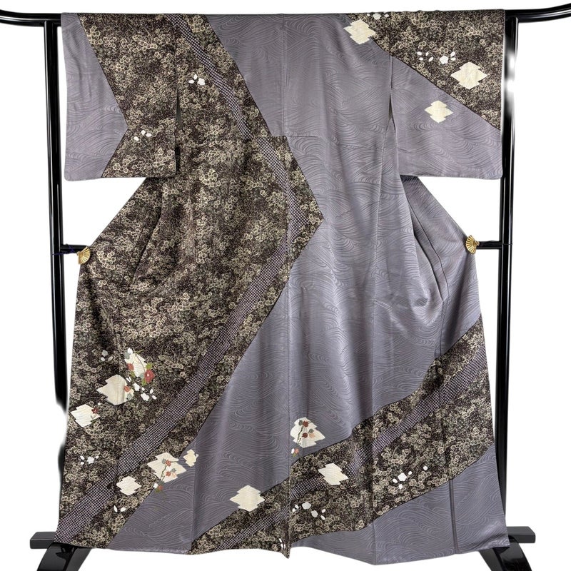【着物ランク】秀品 【素材】正絹 【身丈】約160cm 【裄丈】約62cm 【袖丈】約48.5cm 【袖幅】約32cm 【前幅】約25.5cm 【後幅】約32cm 【サイズ】S 【着物仕立て】袷 【着用時期】10~5月 【状態ランク】ランクB 【着物着用シーン】披露宴、パーティー、お見合い、式典、茶会