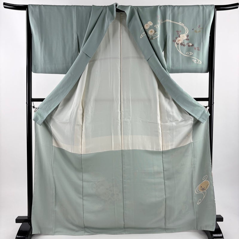 【訪問着】 灰色系 灰緑 秀品 C 約170cm~約179cm 裄丈67cm-68cm (L)size 袖丈49cm 7990-9980 二万以下