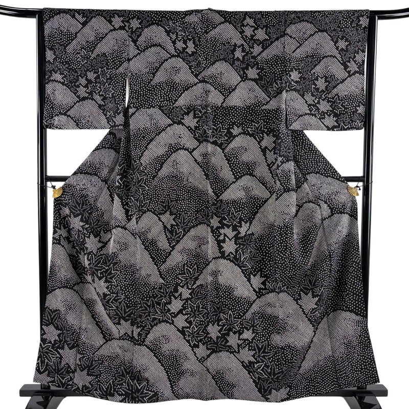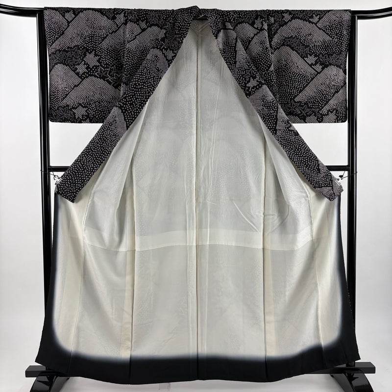 【訪問着】 黒系 黒 秀品 A 約150cm~約159cm 裄丈62cm以下 (S)size 袖丈48cm 7990-9980 美品 二万以下