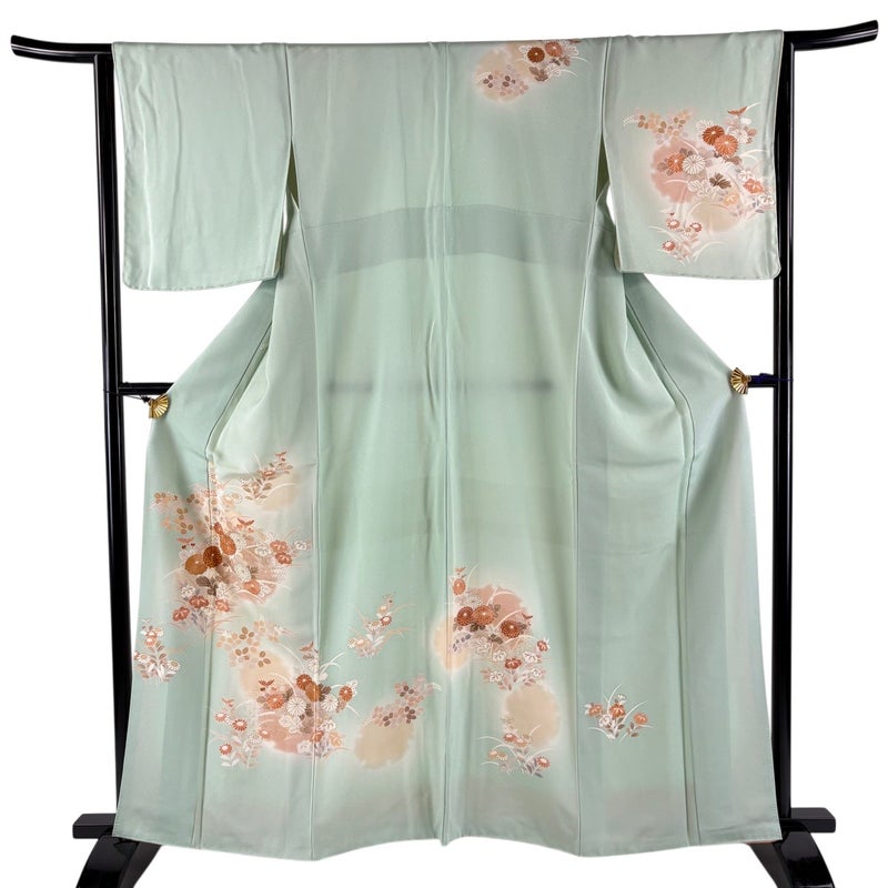 【訪問着】 緑系 薄緑 秀品 B 約160cm~約169cm 裄丈63cm-64cm (M)size 袖丈49cm 7990-9980 二万以下