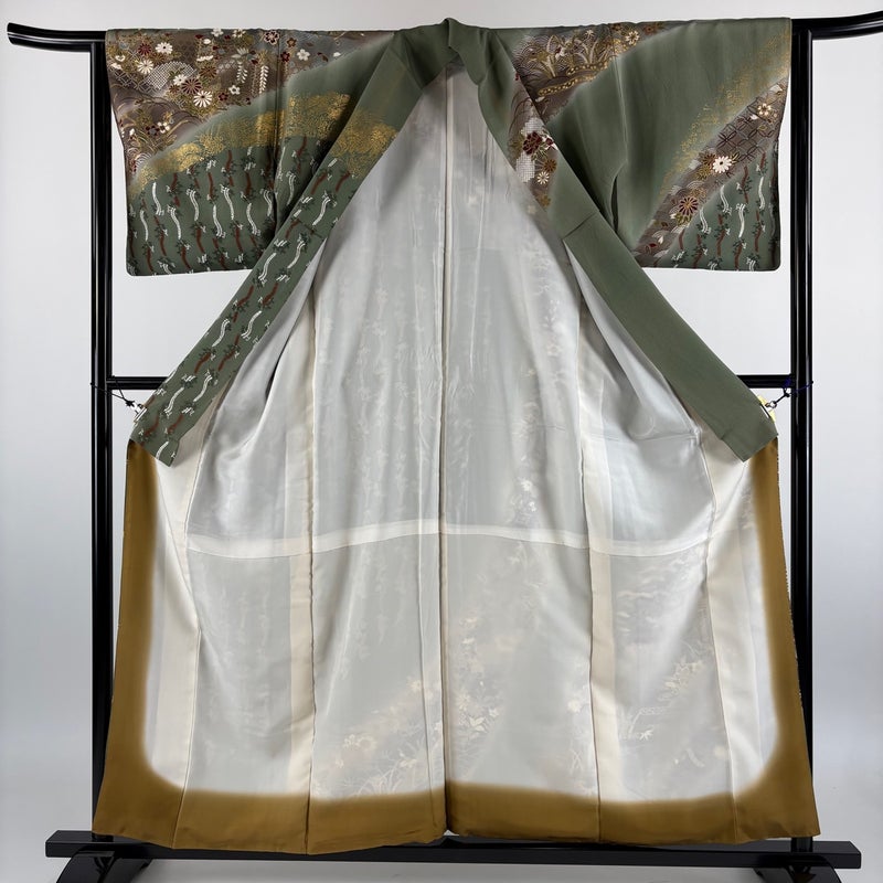 【訪問着】 灰色系 灰緑 秀品 C 約150cm~約159cm 裄丈63cm-64cm (S)size 袖丈46cm以下 7990-9980 二万以下