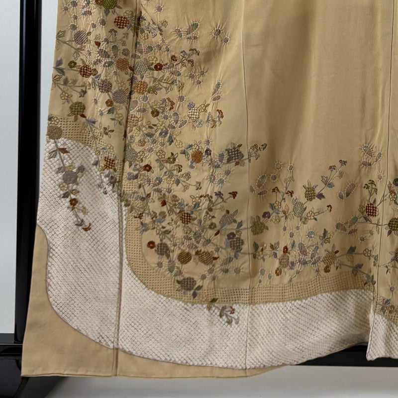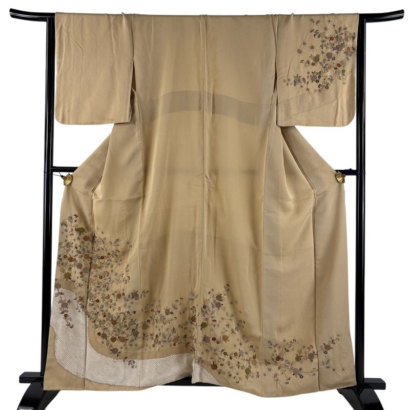 【着物ランク】秀品 【素材】正絹 【身丈】約158cm 【裄丈】約65.5cm 【袖丈】約49cm 【袖幅】約34cm 【前幅】約24cm 【後幅】約30cm 【サイズ】M 【着物仕立て】袷 【着用時期】10~5月 【状態ランク】ランクA 【着物着用シーン】披露宴、パーティー、お見合い、式典、茶会