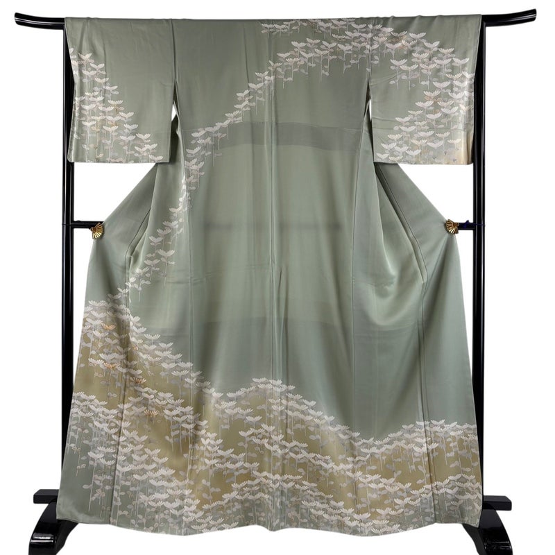 【訪問着】 緑系 薄緑 秀品 A 約160cm~約169cm 裄丈65cm (M)size 袖丈48cm 9990-29990 美品 二万以下
