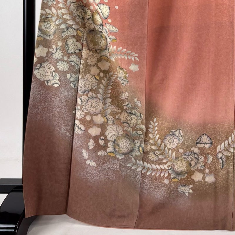【訪問着】 赤系 サーモンピンク 秀品 B 約160cm~約169cm 裄丈67cm-68cm (M)size 袖丈48cm 7990-9980 二万以下