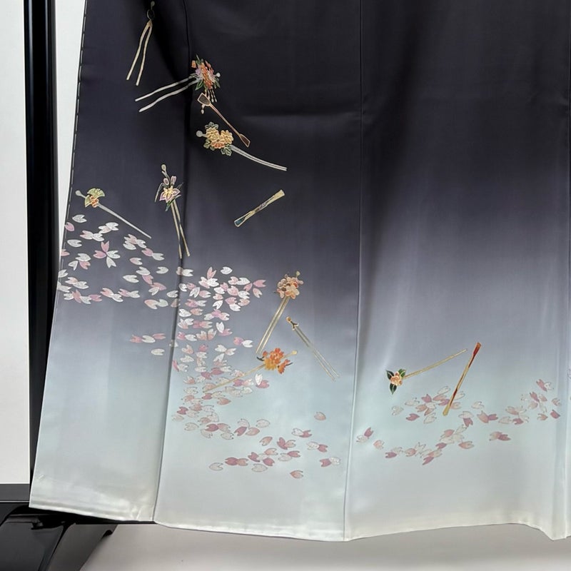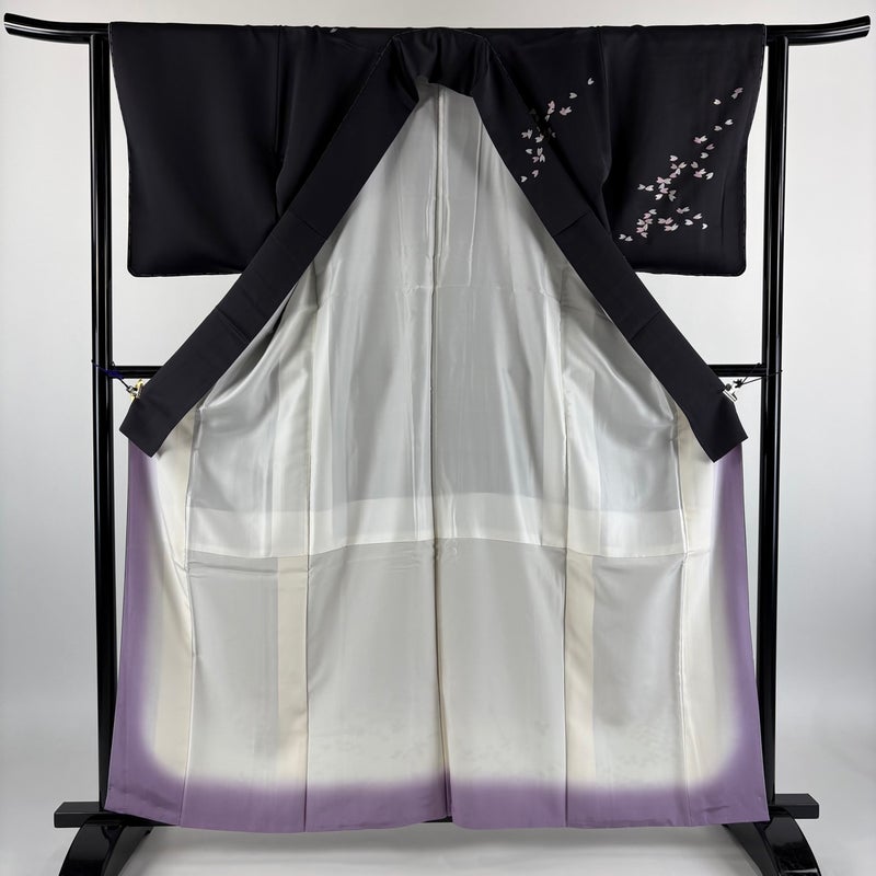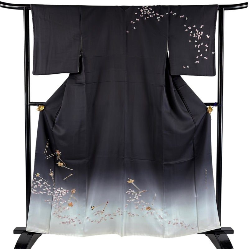 【訪問着】 灰色系 黒灰 秀品 B 約150cm~約159cm 裄丈63cm-64cm (S)size 袖丈49cm 7990-9980 二万以下