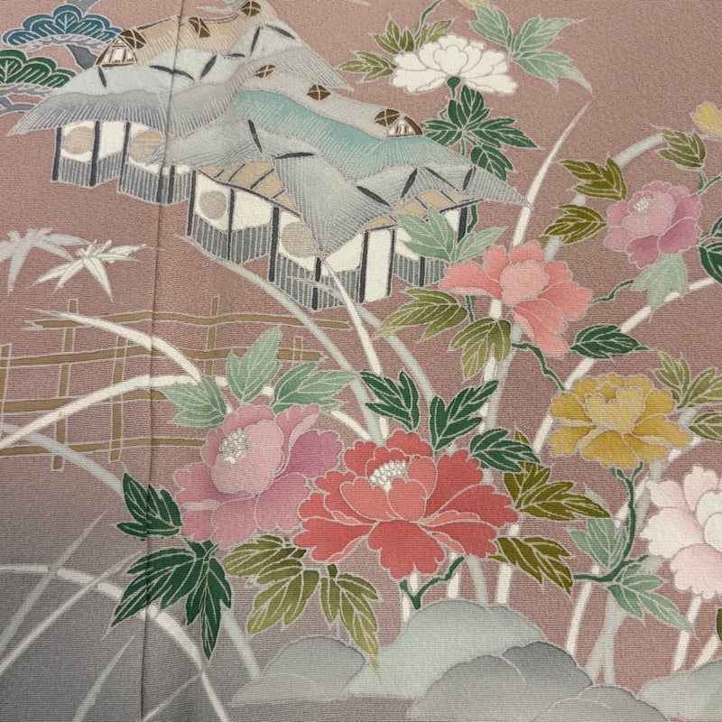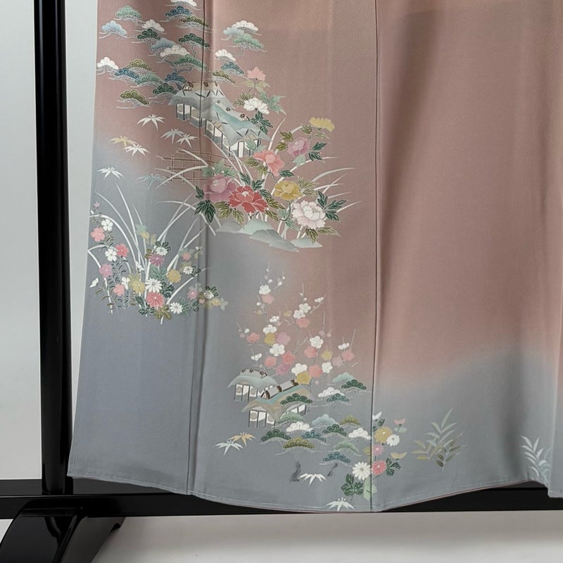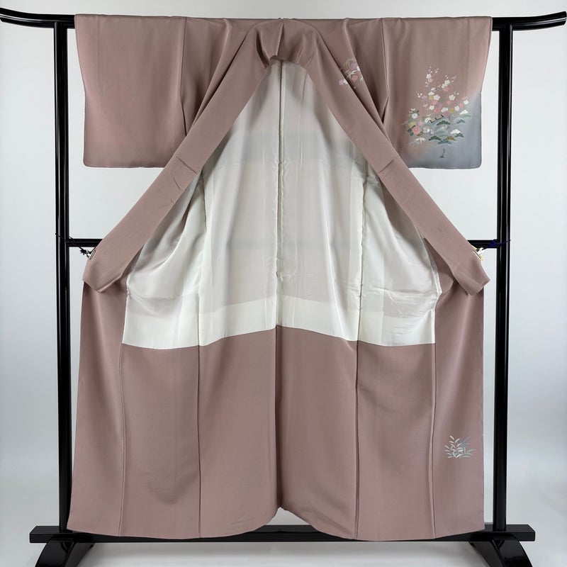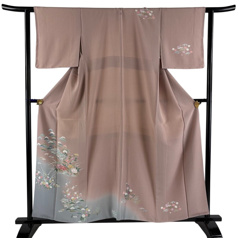 【訪問着】 赤系 ピンクベージュ 秀品 A 約150cm~約159cm 裄丈62cm以下 (S)size 袖丈46cm以下 9990-29990 美品 二万以下