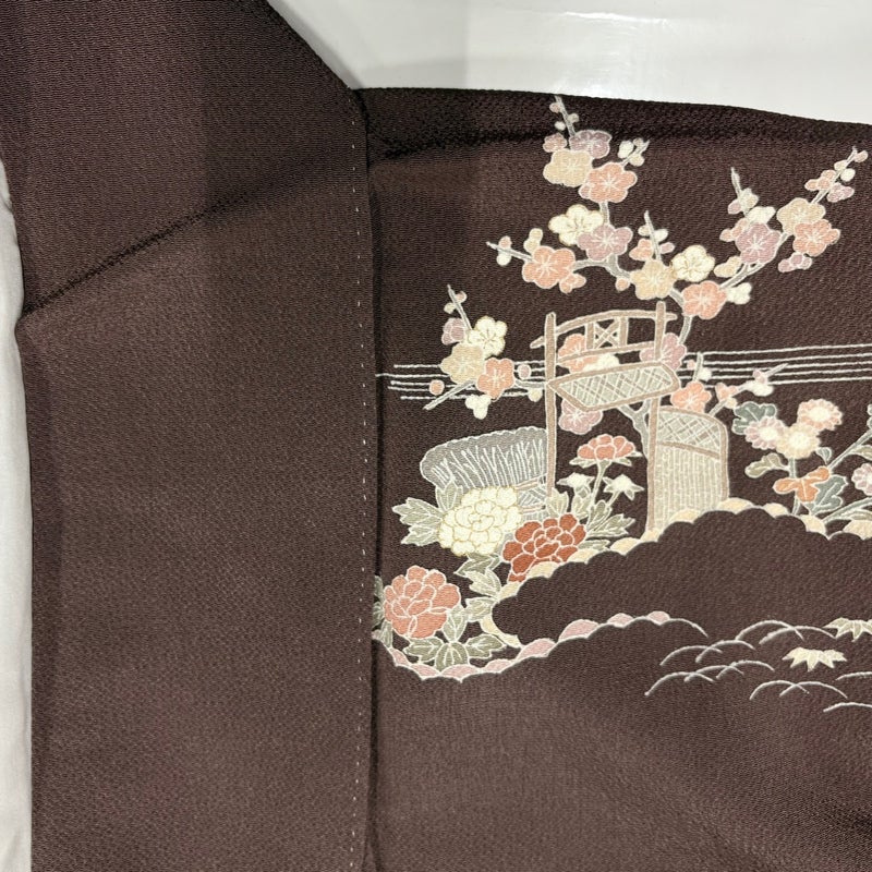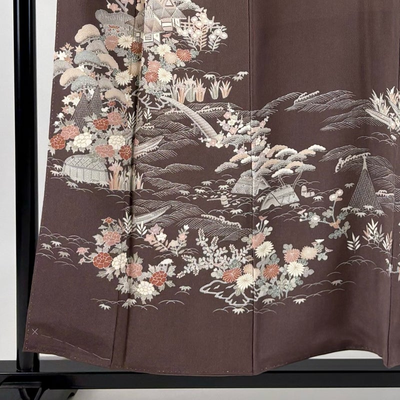 【訪問着】 茶系 茶紫 秀品 A 約150cm~約159cm 裄丈62cm以下 (S)size 袖丈46cm以下 7990-9980 美品 二万以下