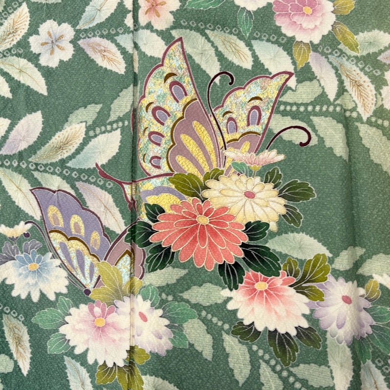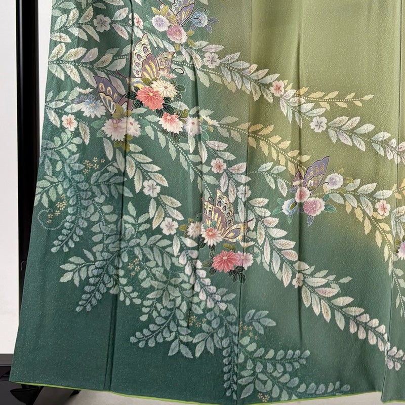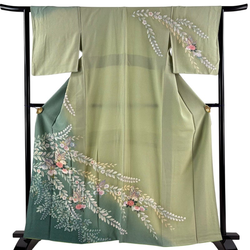 【訪問着】 緑系 薄緑 秀品 B 約160cm~約169cm 裄丈63cm-64cm (M)size 袖丈48cm 7990-9980 二万以下
