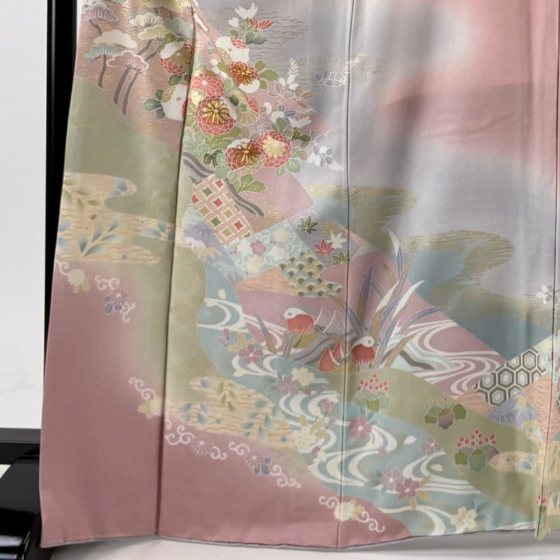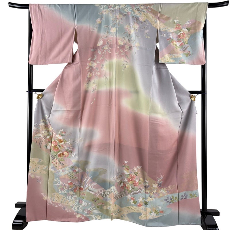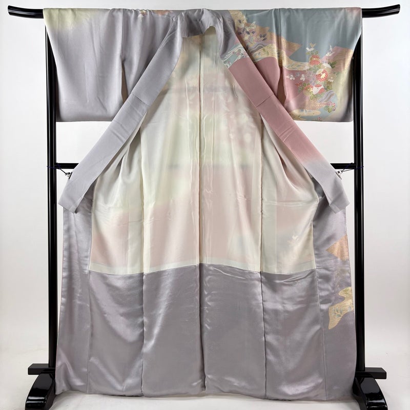 【着物ランク】秀品 【素材】正絹 【身丈】約166cm 【裄丈】約66cm 【袖丈】約48.5cm 【袖幅】約34cm 【前幅】約24.5cm 【後幅】約30cm 【サイズ】M 【着物仕立て】袷 【着用時期】10~5月 【状態ランク】ランクC 【着物着用シーン】披露宴、パーティー、お見合い、式典、茶会