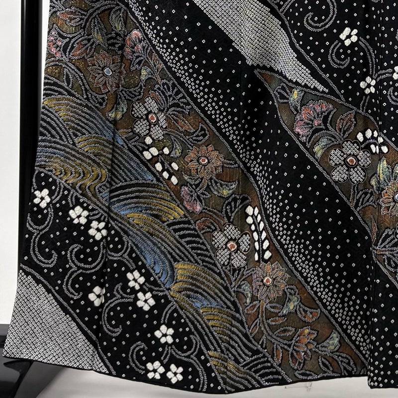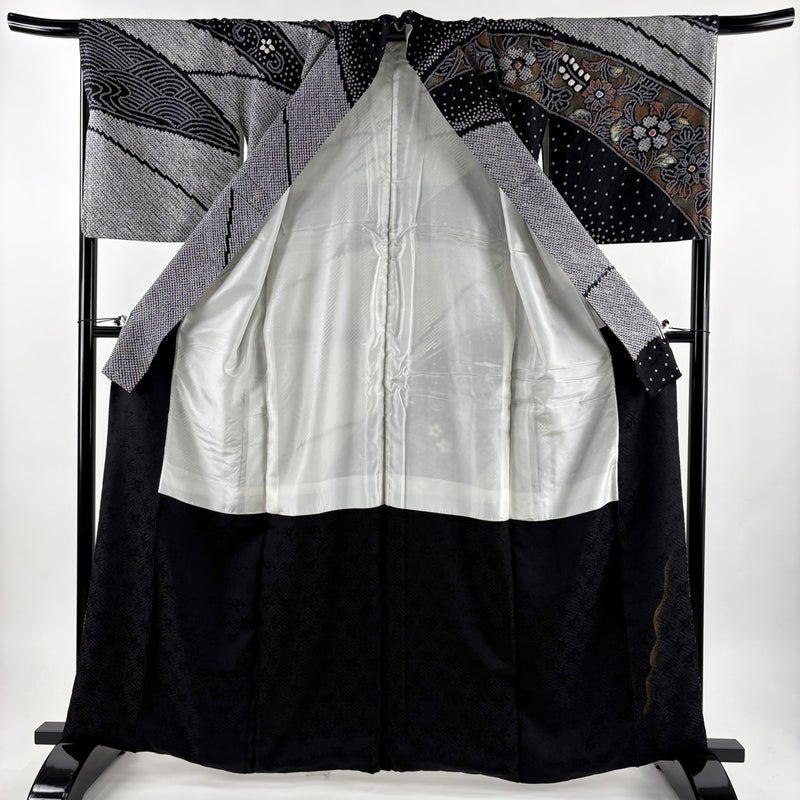 【訪問着】 黒系 黒 秀品 A 約160cm~約169cm 裄丈66cm (M)size 袖丈47cm 9990-29990 美品 二万以下