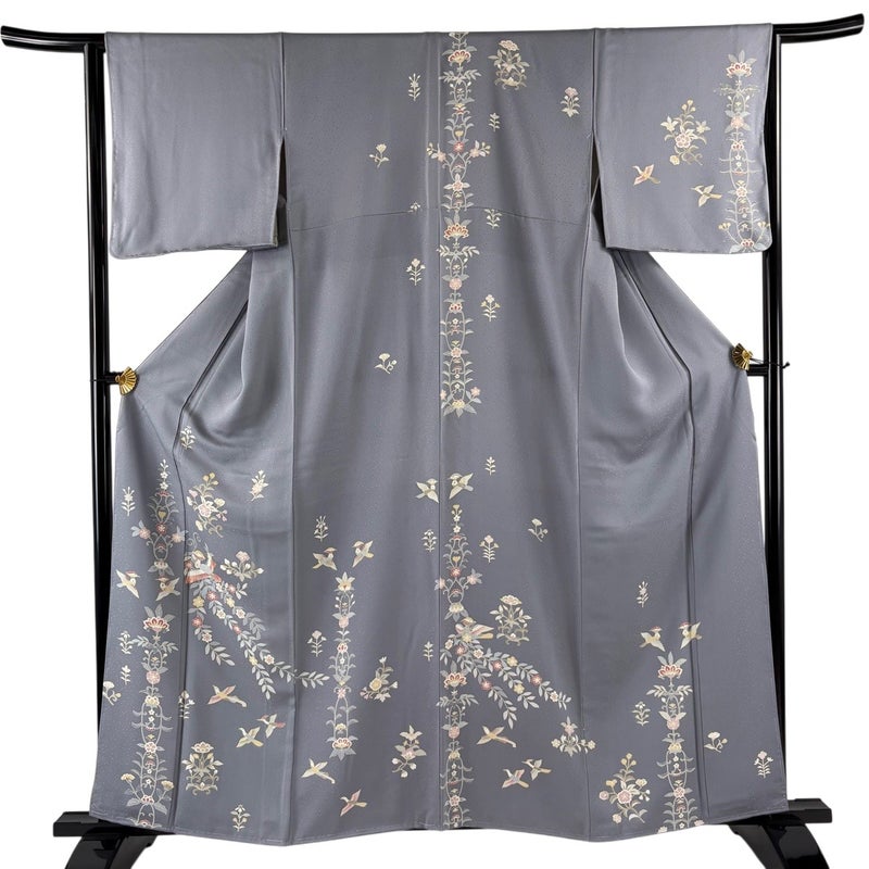 【訪問着】 灰色系 灰色 秀品 B 約150cm~約159cm 裄丈63cm-64cm (M)size 袖丈46cm以下 7990-9980 二万以下