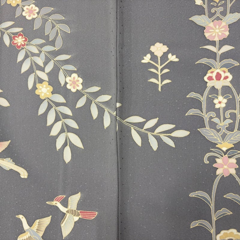 【着物ランク】秀品 【素材】正絹 【身丈】約159cm 【裄丈】約64cm 【袖丈】約45.5cm 【袖幅】約33.5cm 【前幅】約24cm 【後幅】約30.5cm 【サイズ】M 【着物仕立て】袷 【着用時期】10~5月 【状態ランク】ランクB 【着物着用シーン】披露宴、パーティー、お見合い、式典、茶会