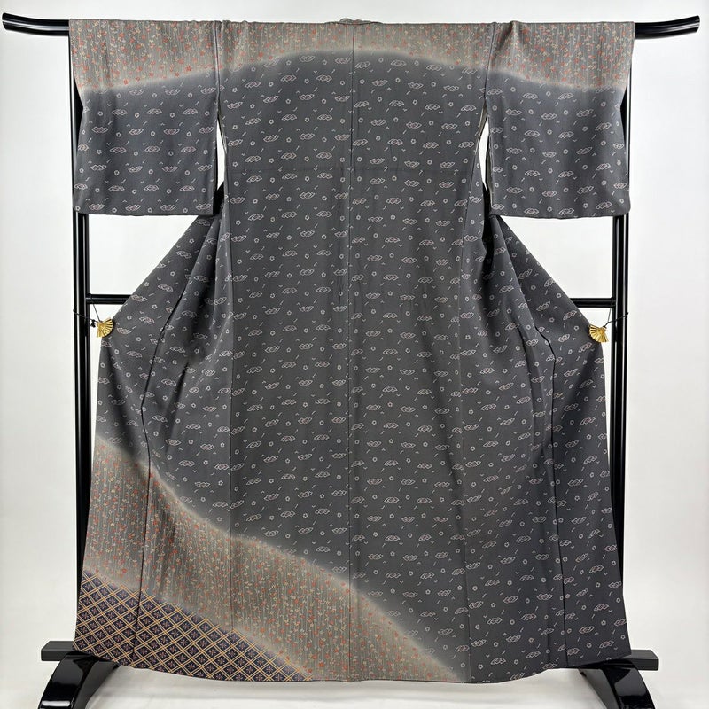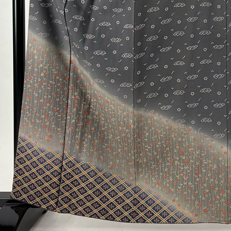 【訪問着】 灰色系 黒灰 秀品 C 約160cm~約169cm 裄丈69cm以上 (L)size 袖丈48cm 7990-9980 二万以下