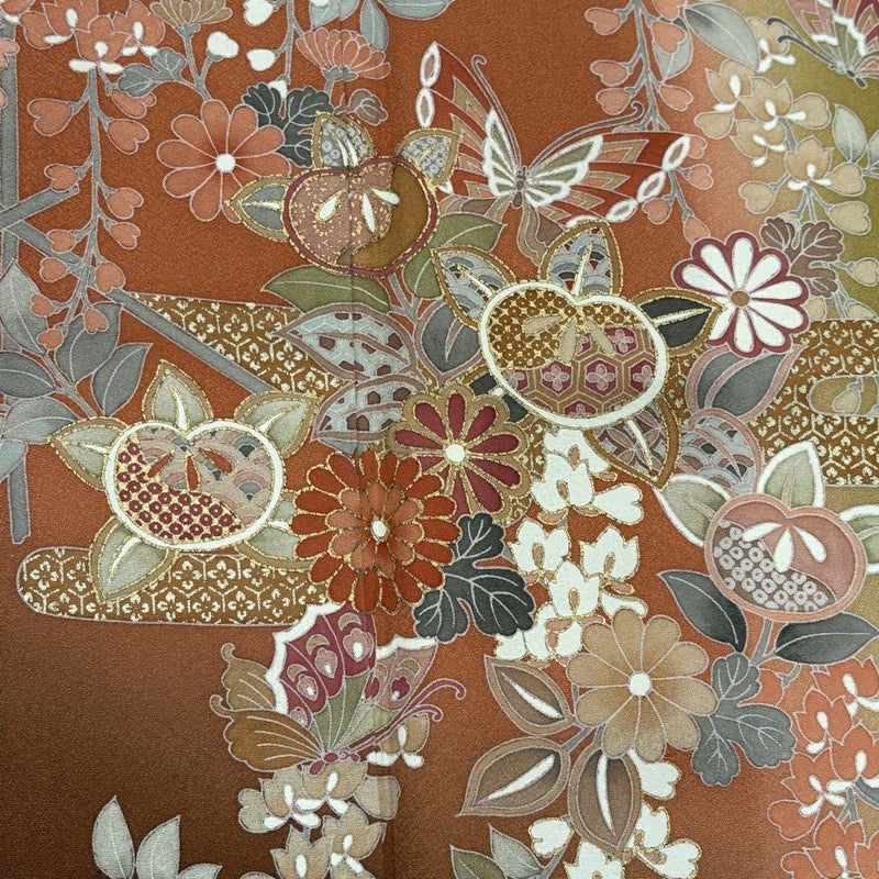 【訪問着】 赤系 赤茶 秀品 B 約150cm~約159cm 裄丈67cm-68cm (M)size 袖丈48cm 7990-9980 二万以下